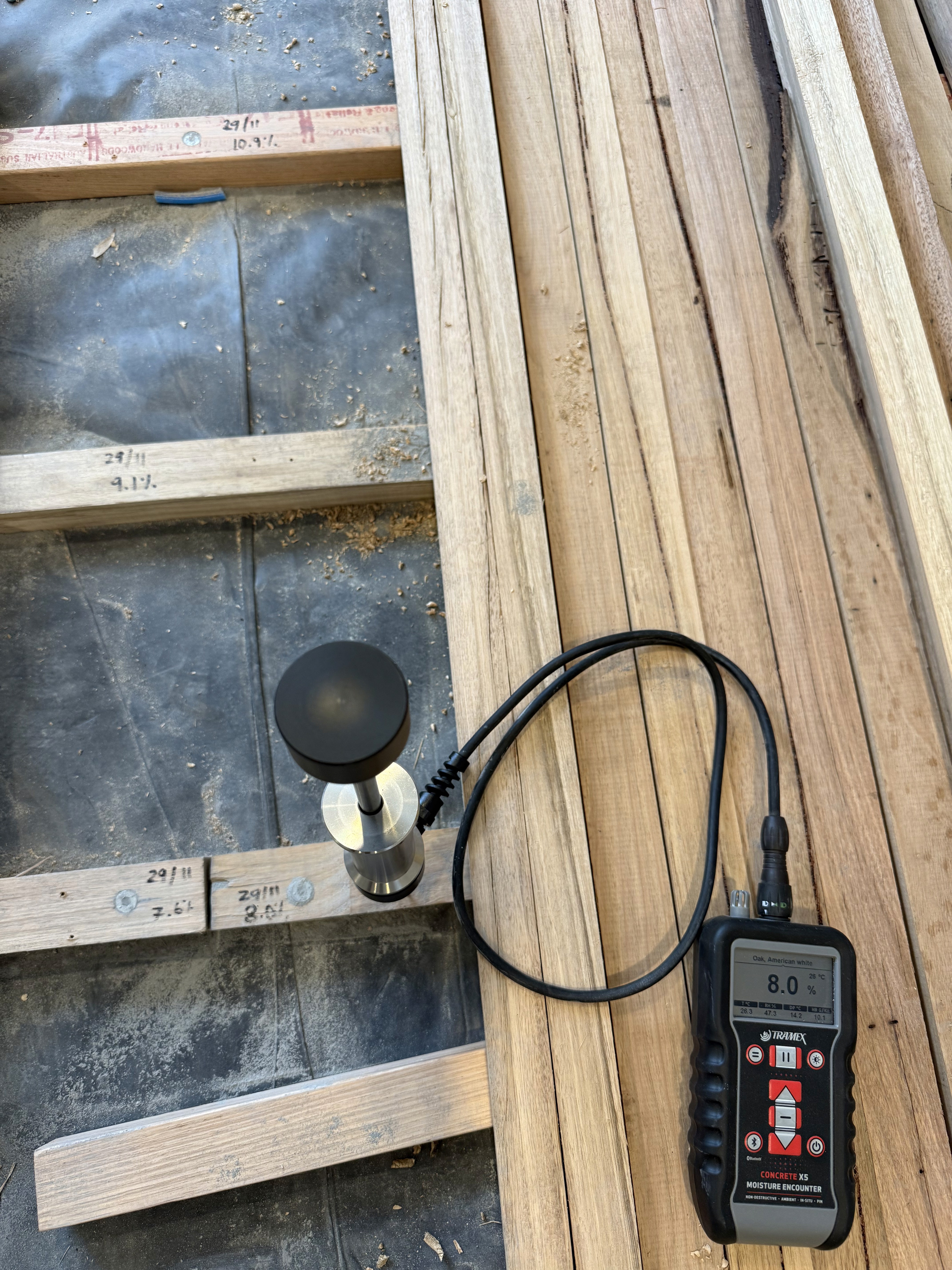 Tetris Timber Flooring carried out a full strip-out of the existing floor, removing damaged boards and compromised battens before grinding and preparing the substrate. A comprehensive moisture control system was then installed, including two coats of moisture barrier and dual layers of builder’s plastic, followed by new Tasmanian Oak battens to create a stable and compliant base.
