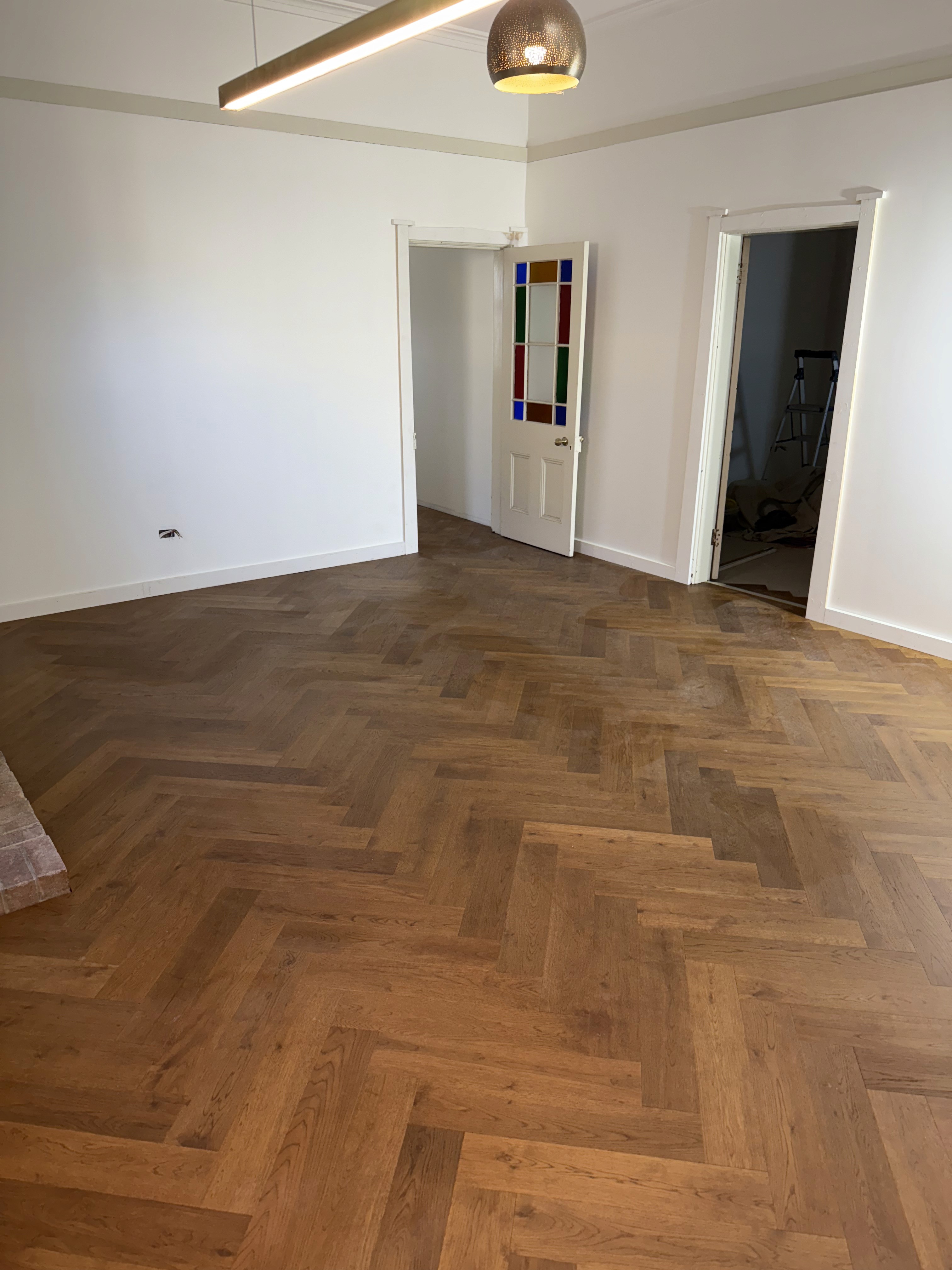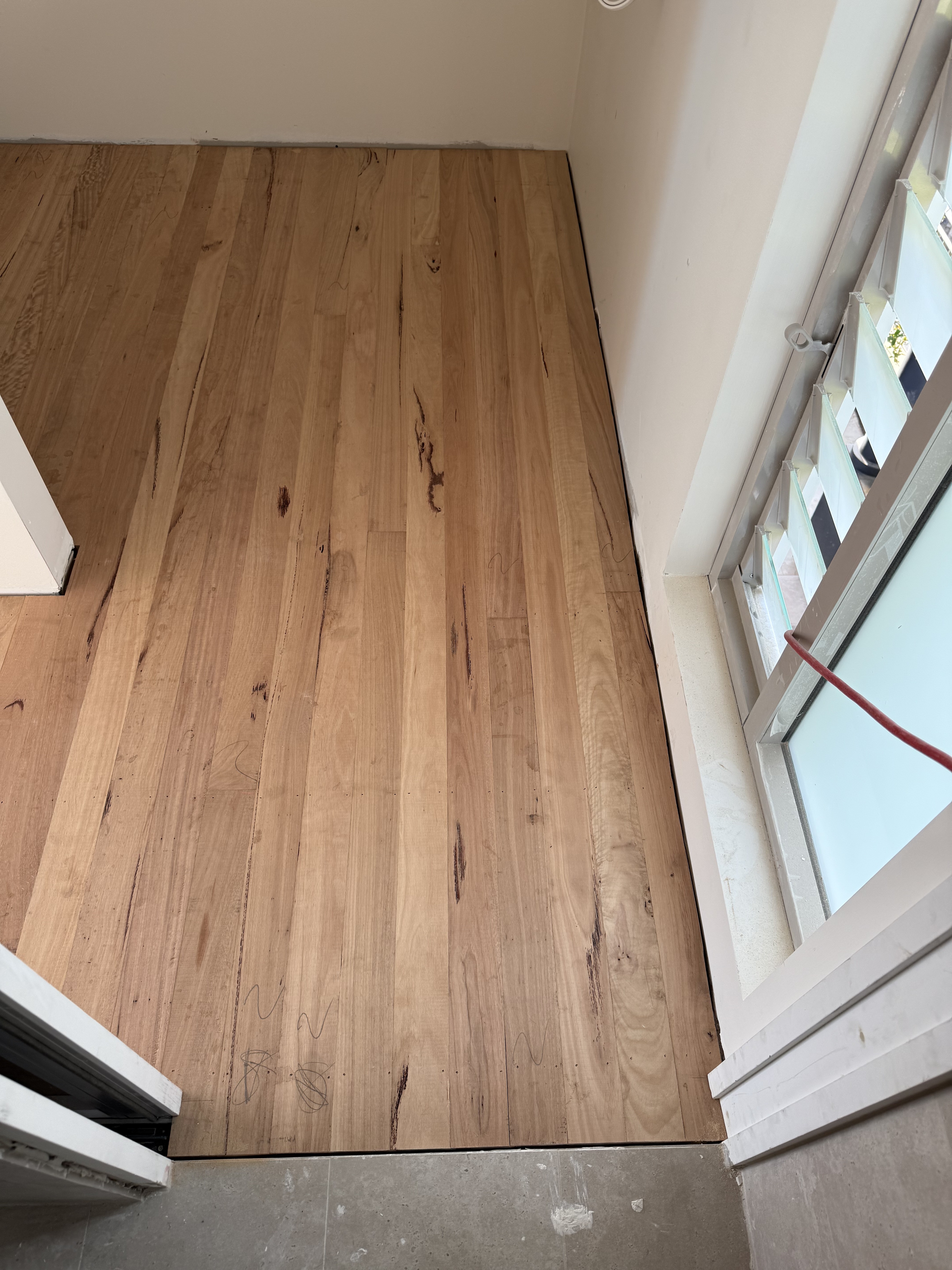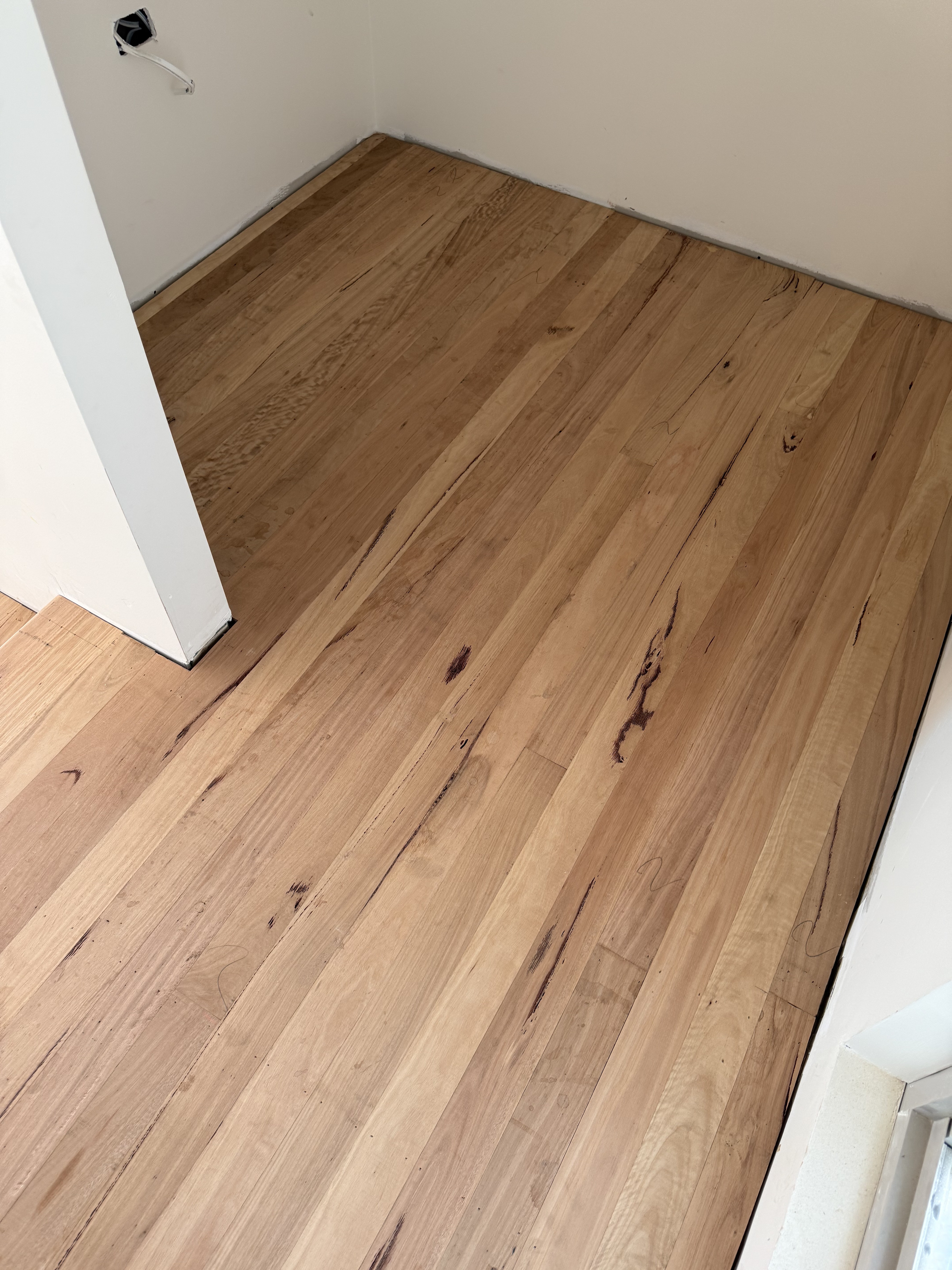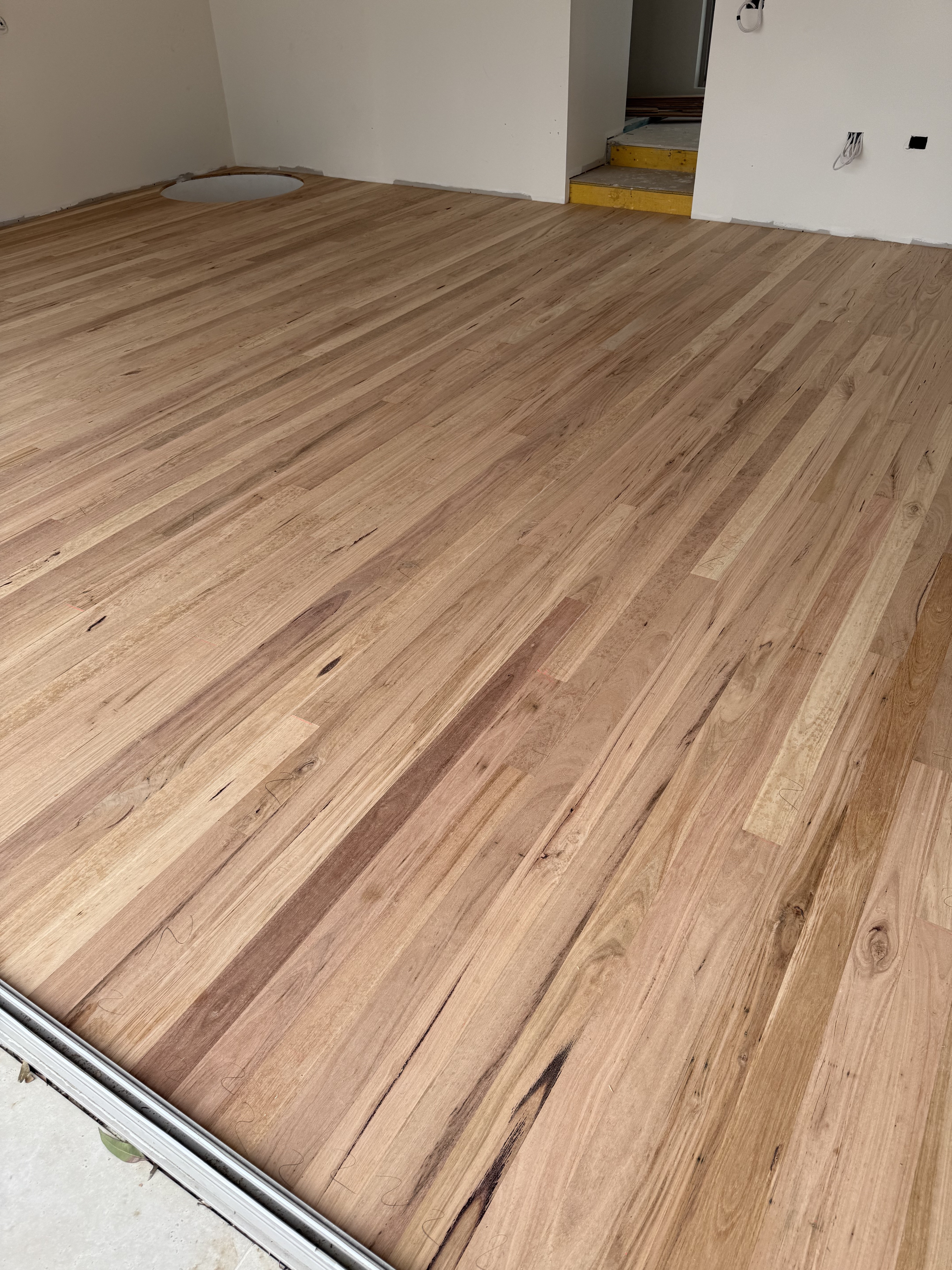 Tetris Timber Flooring meticulously installed the hardwood to ensure structural integrity and visual consistency throughout the space. The boards were then sanded back and polished to a high standard, highlighting the character of the timber while delivering a smooth, durable surface suited for everyday use.