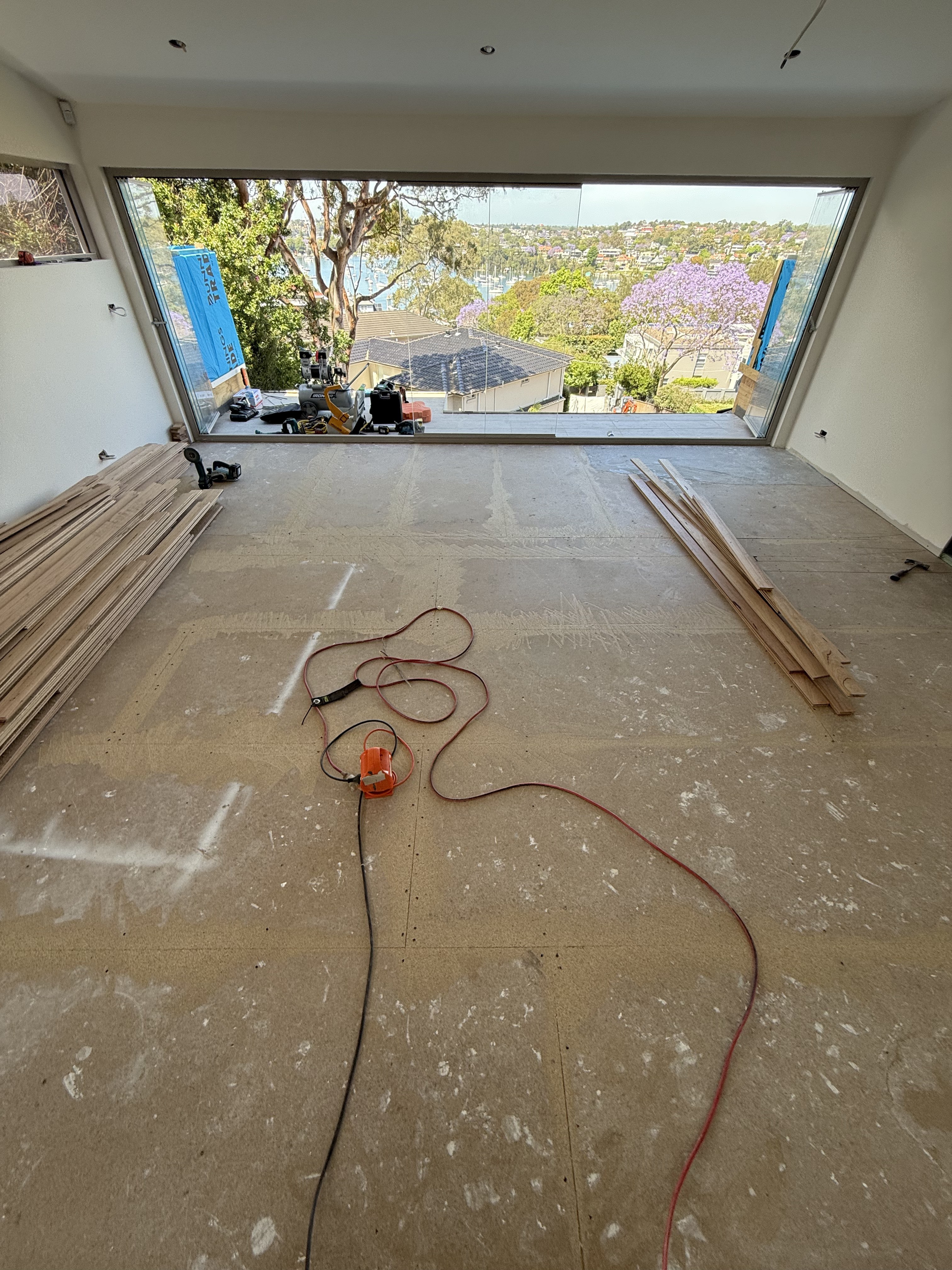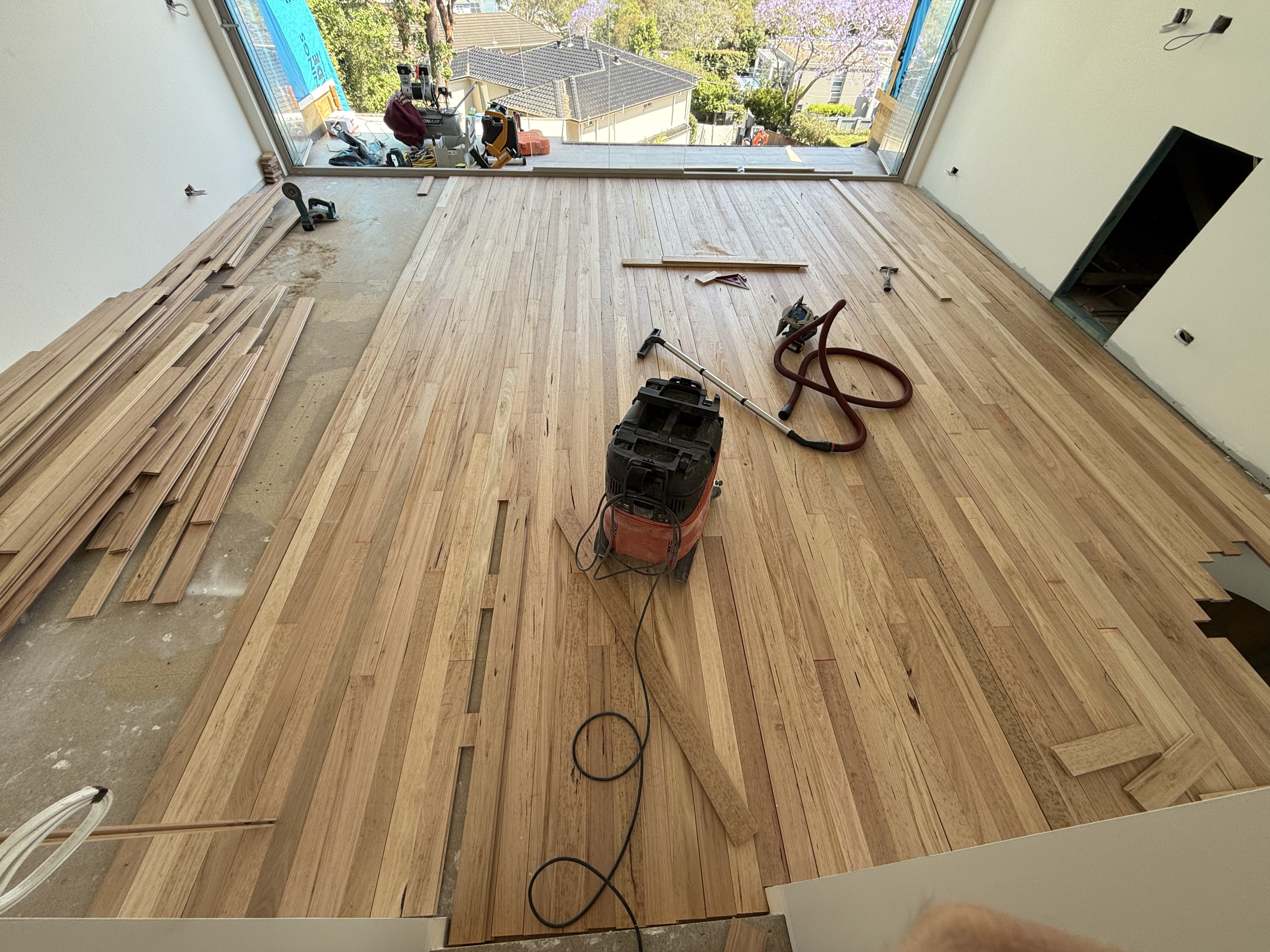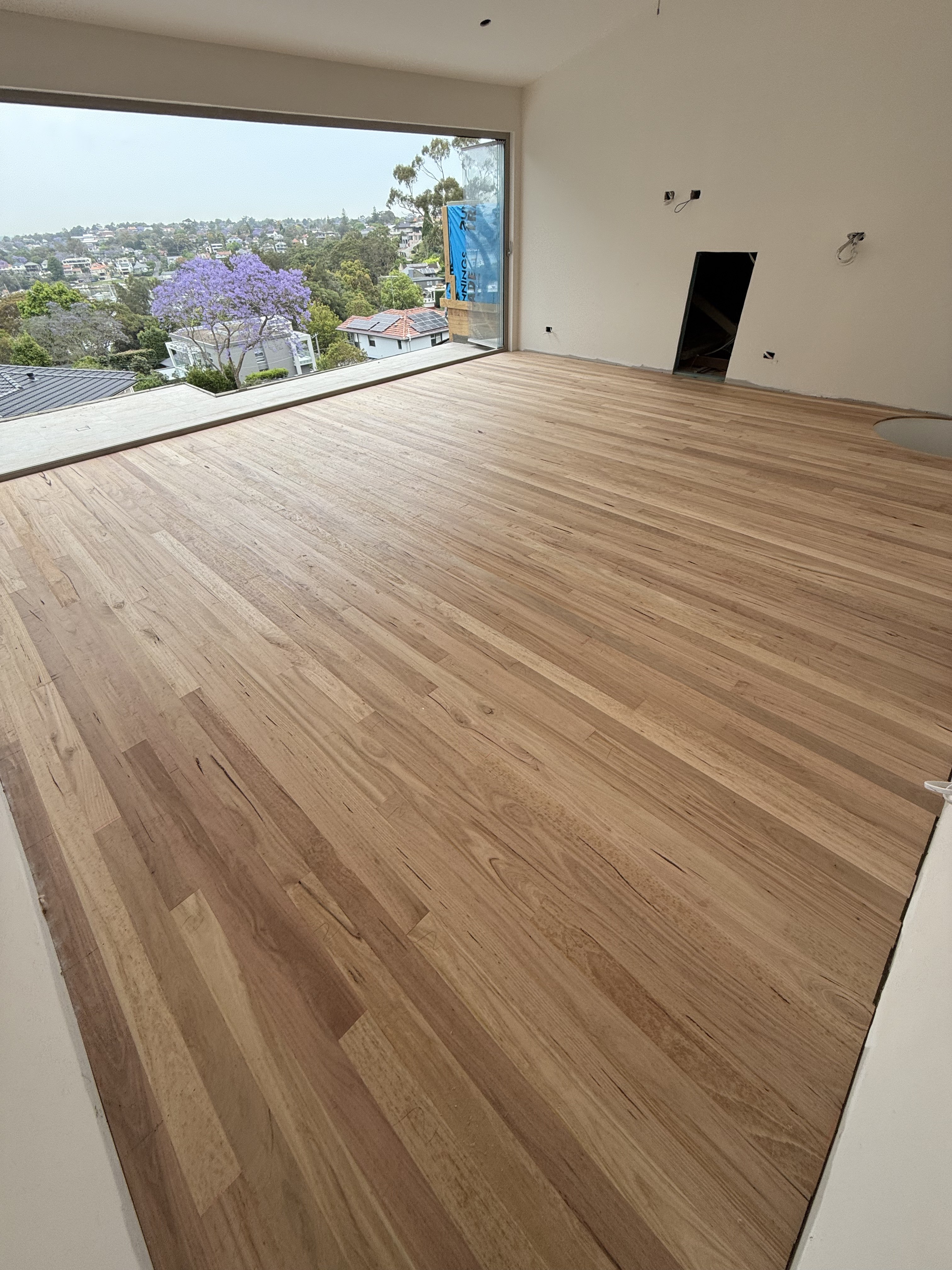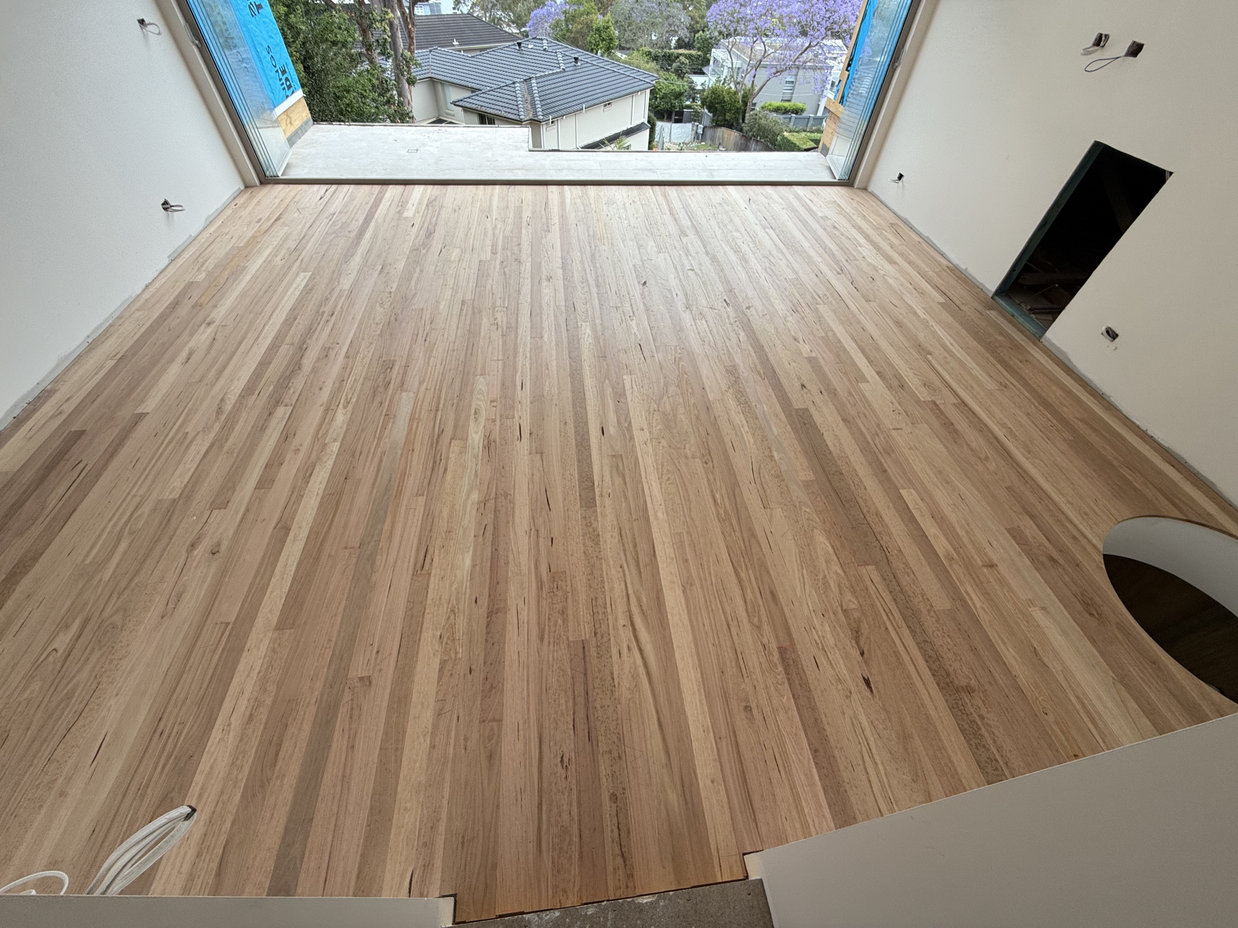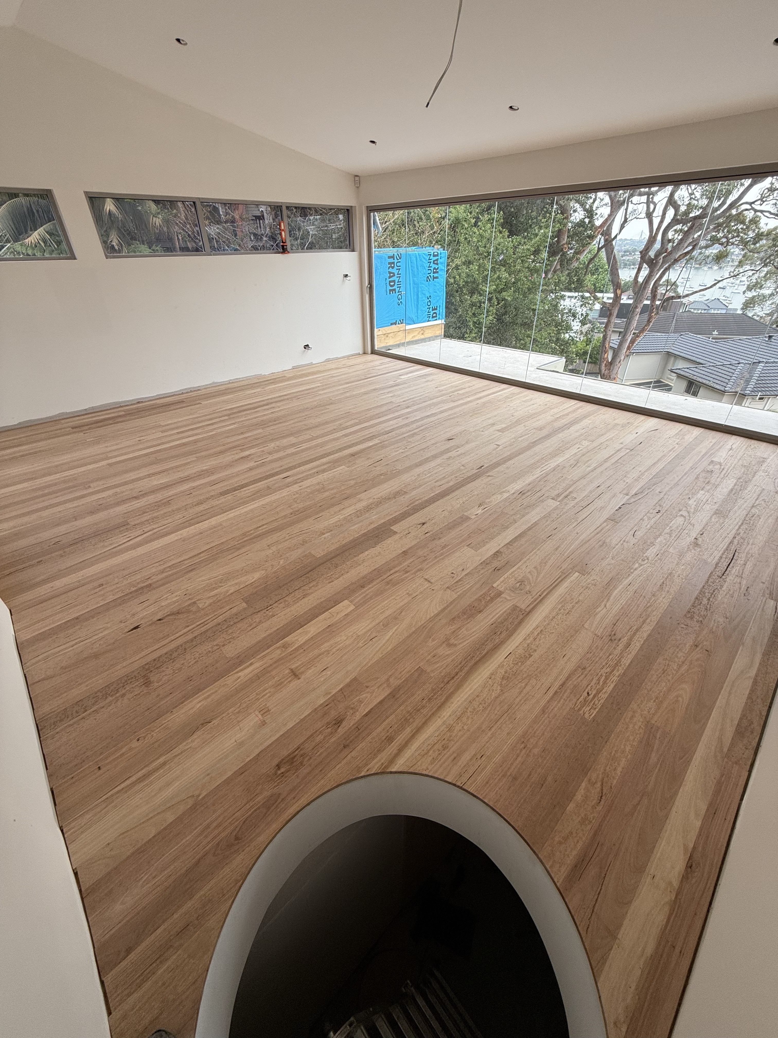 This Longueville project focused on the installation, sanding, and polishing of premium Blackbutt hardwood within a mezzanine space. The natural grain and warm tones of the timber were brought to life through careful finishing, creating a clean and sophisticated result that enhances the architectural layout of the home.